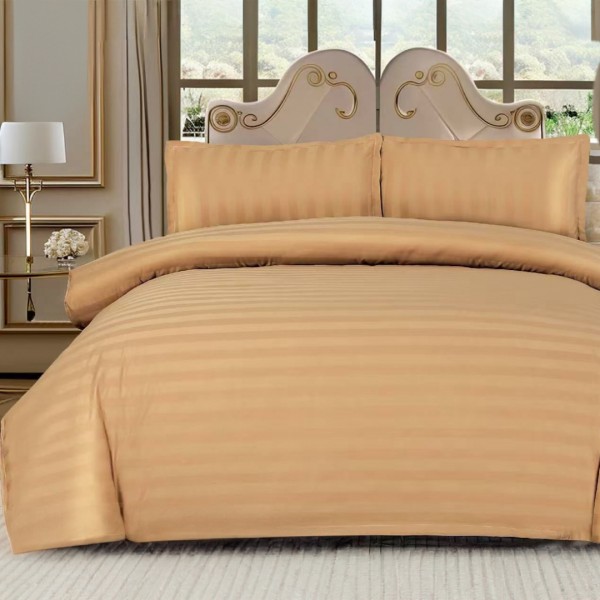 Lenjerie HoReCa, pat dublu, Damasc Finetat Deluxe cu Elastic, 4 piese, Bej închis, Primavara Casa, cod produs: EST-KD-05