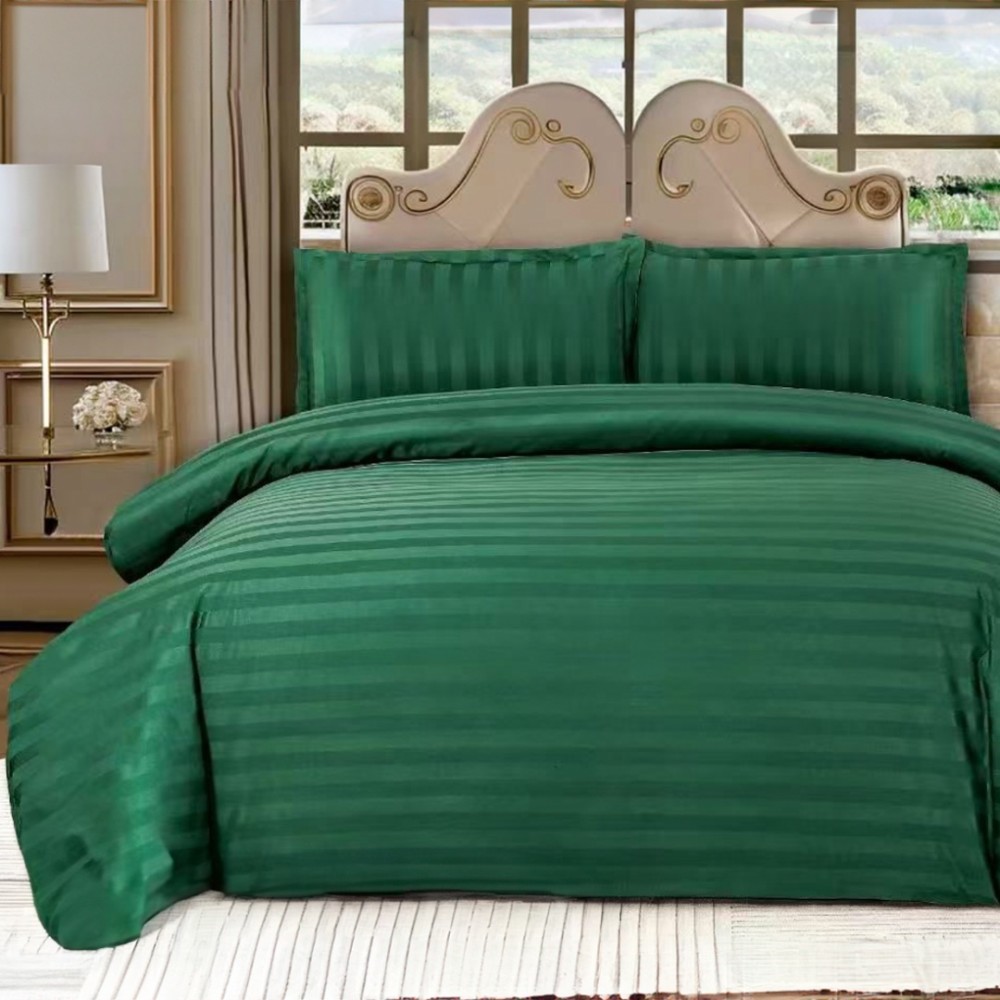 Lenjerie HoReCa, pat dublu, Damasc Finetat Deluxe cu Elastic, 4 piese, Verde Smarald, Primavara Casa, cod produs: EST-KD-02