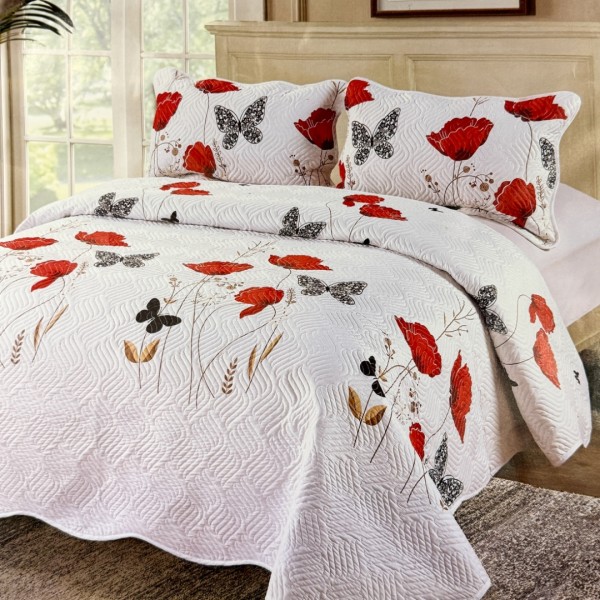 Cuvertură Pat Dublu, 3 Piese, Bumbac 100% Imprimat – Calitate Premium, cu Imprimeu Durabil, cod CSA-CV56, East Romania