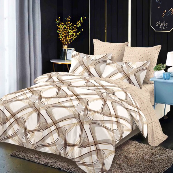 Lenjerie pat dublu, FINET, cu elastic, 6 piese, Bej, Maro, Model Clasic, Super Design Pucioasa, cod produs: SDP-FEB-614