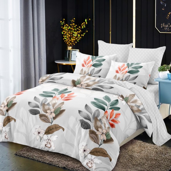 Lenjerie pat dublu, FINET, cu elastic, 6 piese, Gri, Frunze, Super Design Pucioasa, cod produs: SDP-FEB-621