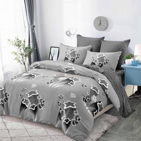 Lenjerie pat dublu, FINET, cu elastic, 6 piese, Gri, Stelute, Super Design Pucioasa, cod produs: SDP-FEB-650