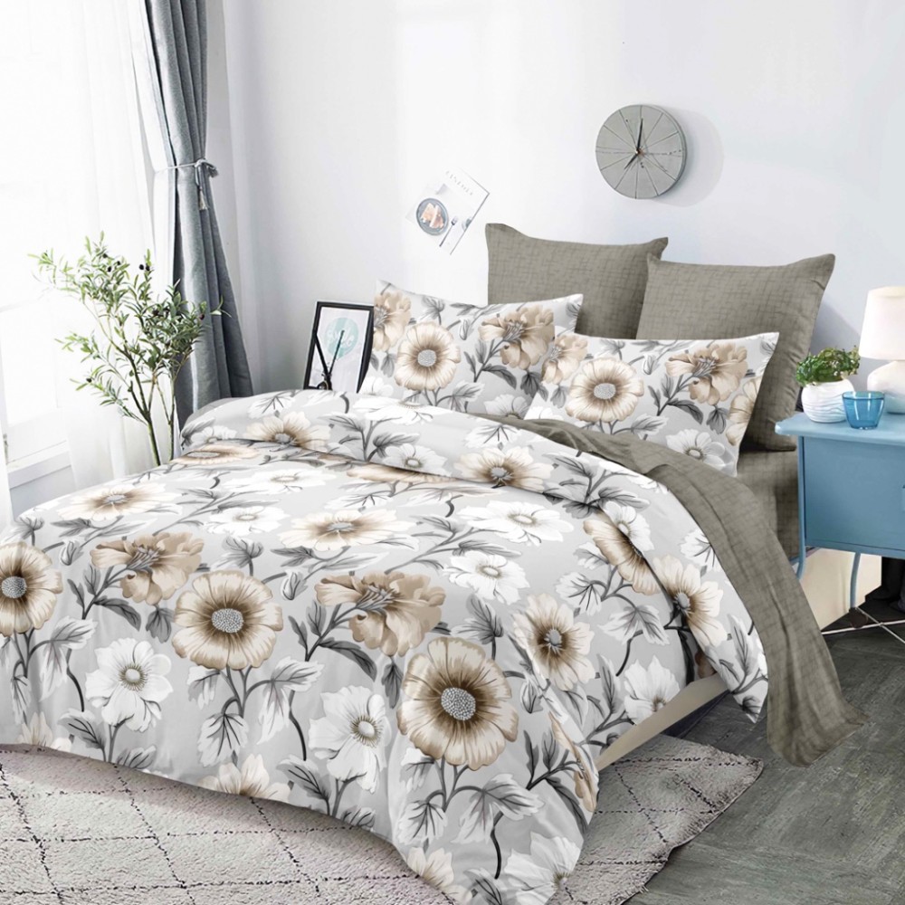 Lenjerie pat dublu, FINET, cu elastic, 6 piese, Gri, Flori, Super Design Pucioasa, cod produs: SDP-FEB-677