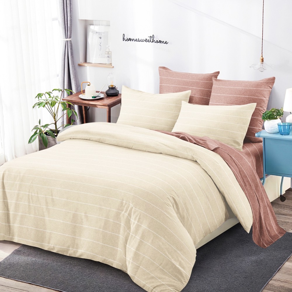 Lenjerie Pat Dublu, FINET, 6 piese, Bej, Maro, Dungi, Linii, Super Design Pucioasa, cod produs: SDP-FNC-107