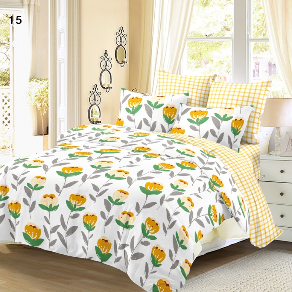 Lenjerie Pat Dublu, FINET, 6 piese, Alb, Galben, Flori, Super Design Pucioasa, cod produs: SDP-FNC-15