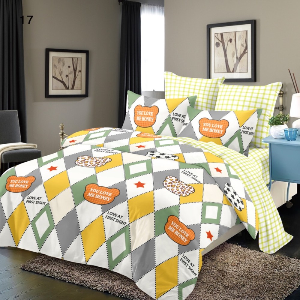 Lenjerie Pat Dublu, FINET, 6 piese, Alb, Galben, Ursuleți, Romburi, Super Design Pucioasa, cod produs: SDP-FNC-17