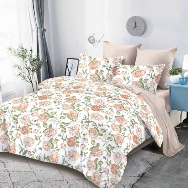 Lenjerie Pat Dublu, FINET, 6 piese, Alb, Roz, Trandafiri, Super Design Pucioasa, cod produs: SDP-FNC-554