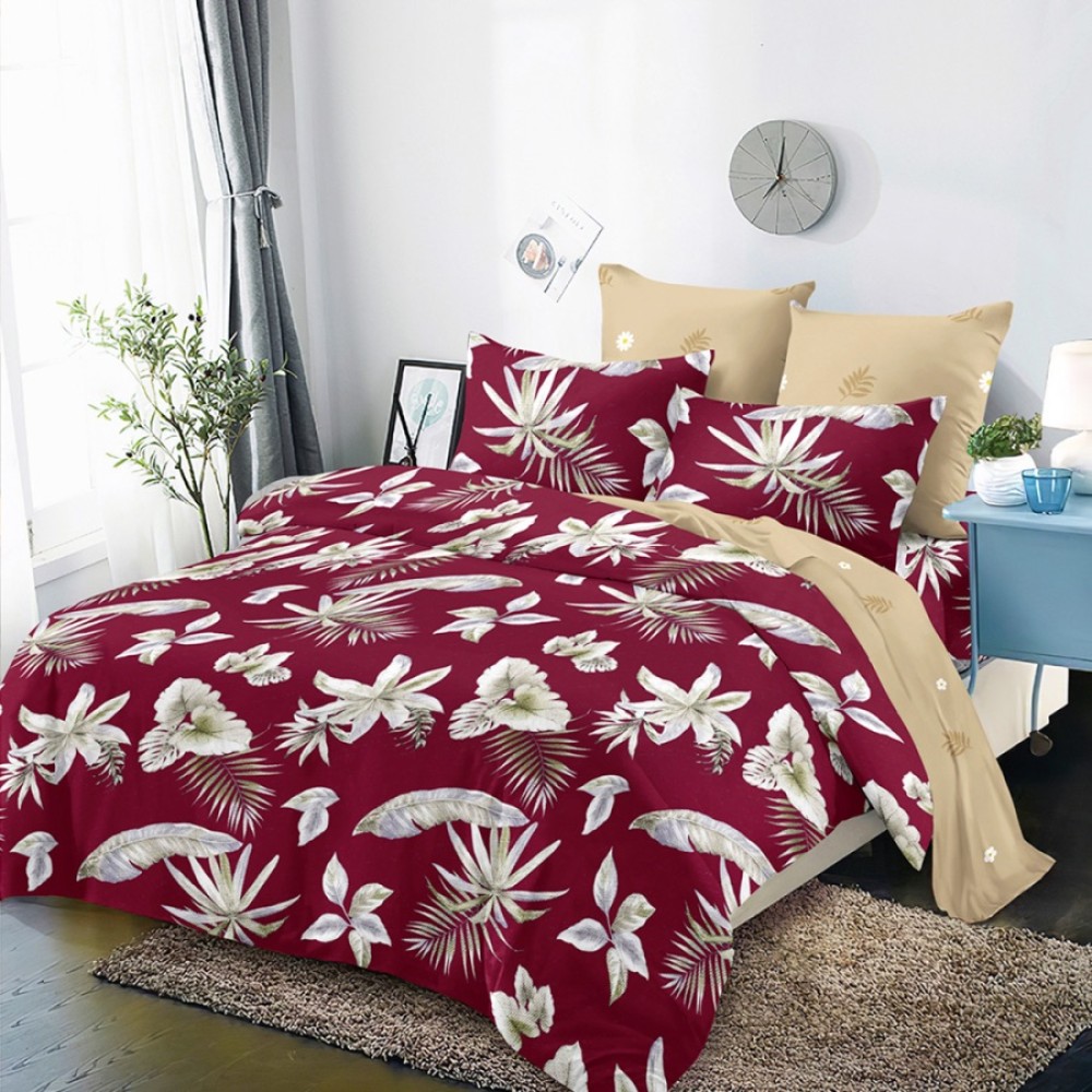 Lenjerie Pat Dublu, FINET, 6 piese, Grena, Bej, Flori, Super Design Pucioasa, cod produs: SDP-FNC-559