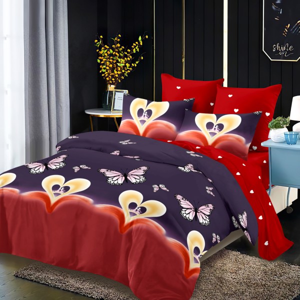 Lenjerie Pat Dublu, FINET, 6 piese, Mov, Roșu, Inimioare, Fluturi, Super Design Pucioasa, cod produs: SDP-FNC-651