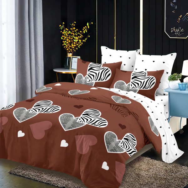 Lenjerie Pat Dublu, FINET, 6 piese, Maro, Alb, Inimioare, Super Design Pucioasa, cod produs: SDP-FNC-653