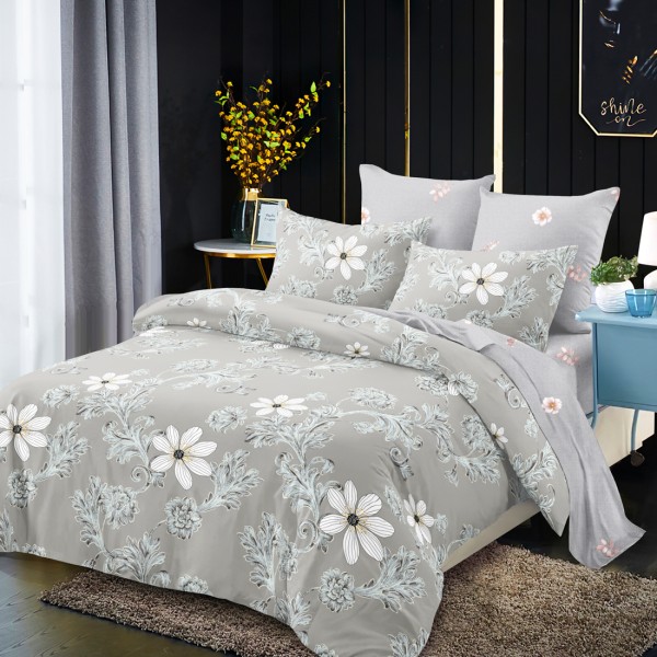Lenjerie Pat Dublu, FINET, 6 piese, Gri, Flori, Super Design Pucioasa, cod produs: SDP-FNC-662