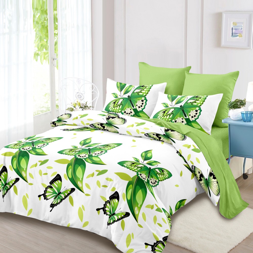 Lenjerie Pat Dublu, FINET, 6 piese, Alb, Verde, Fluturi, Frunze, Super Design Pucioasa, cod produs: SDP-FNC-667