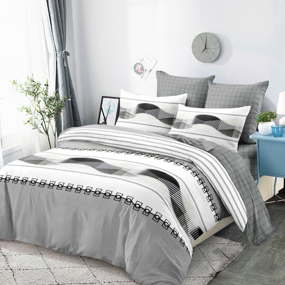 Lenjerie Pat Dublu, FINET, 6 piese, Gri, Model Clasic, Super Design Pucioasa, cod produs: SDP-FNC-694