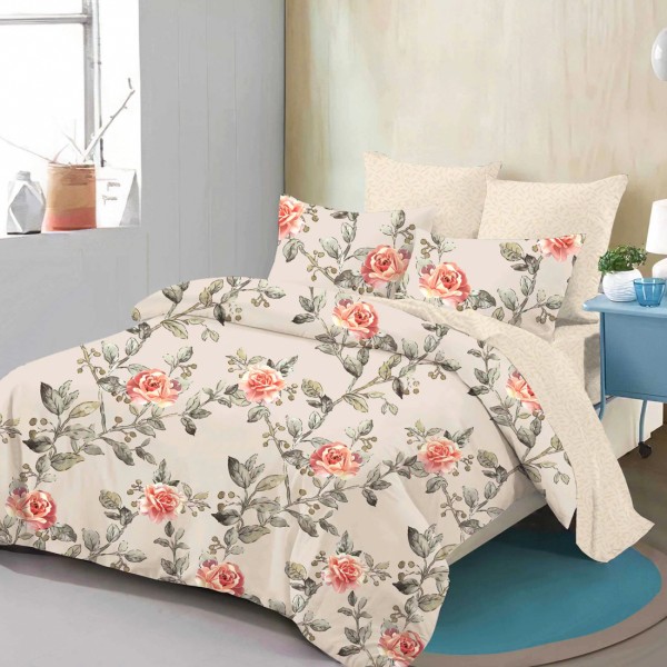Lenjerie Pat Dublu, FINET, 6 piese, Bej, Flori, Super Design Pucioasa, cod produs: SDP-FNC-713