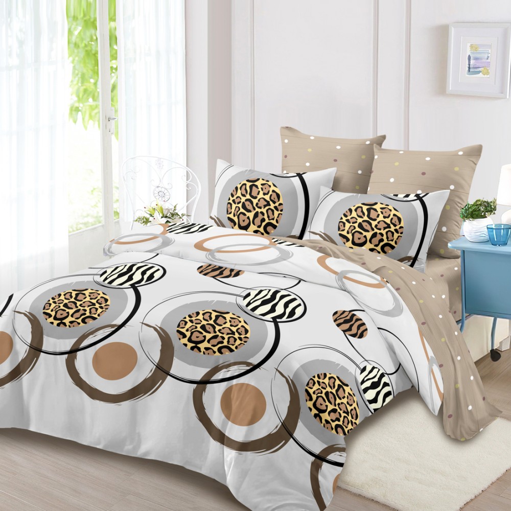 Lenjerie Pat Dublu, FINET, 6 piese, Gri, Bej, Cercuri, Buline, Super Design Pucioasa, cod produs: SDP-FNC-731