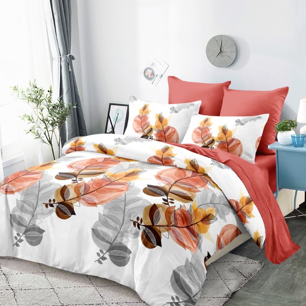Lenjerie Pat Dublu, FINET, 6 piese, Alb, Somon, Frunze, Super Design Pucioasa, cod produs: SDP-FNC-743