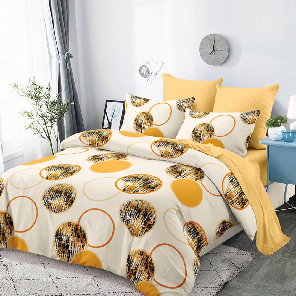 Lenjerie Pat Dublu, FINET, 6 piese, Bej, Galben, Cercuri, Buline, Super Design Pucioasa, cod produs: SDP-FNC-758