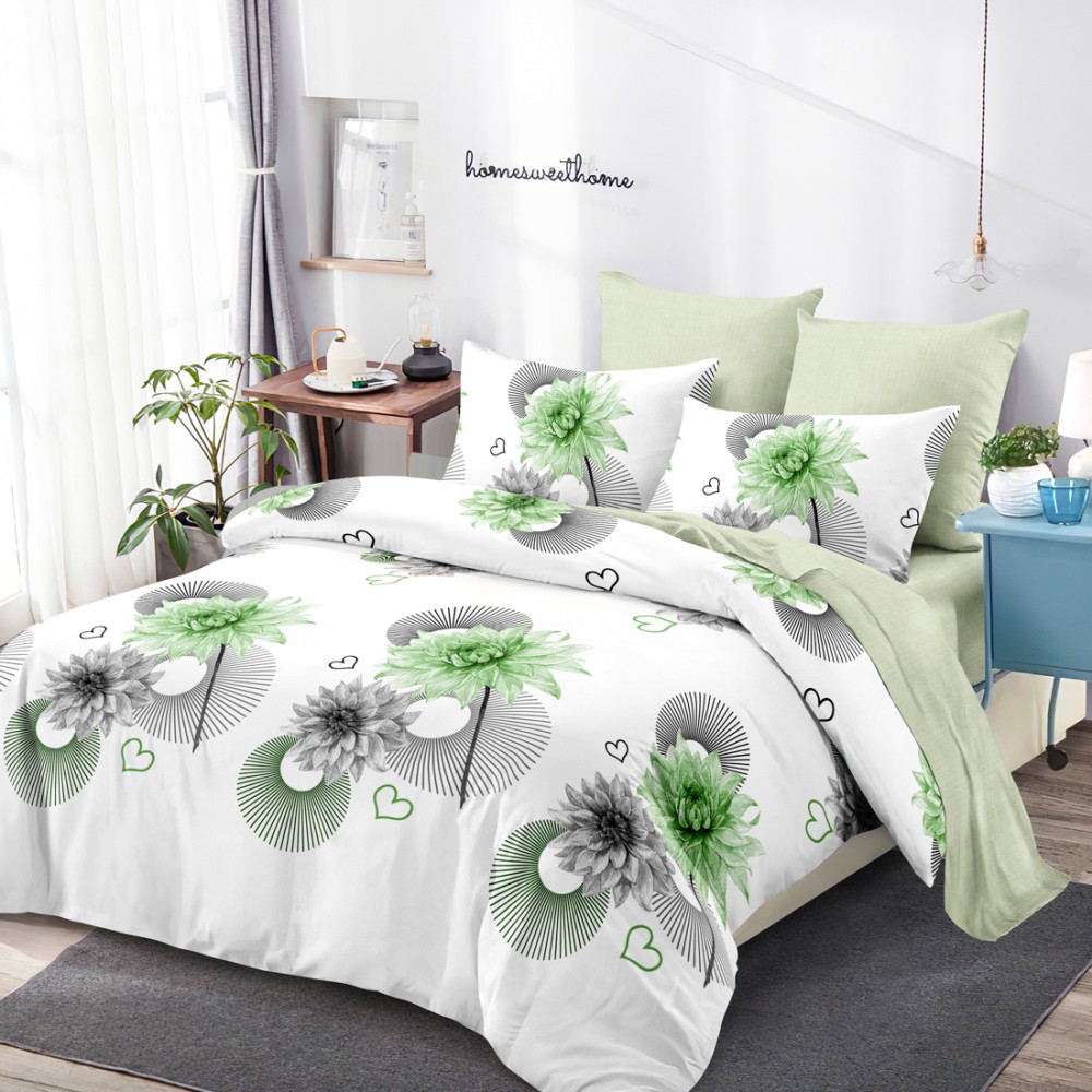 Lenjerie Pat Dublu, FINET, 6 piese, Alb, Verde, Flori, Super Design Pucioasa, cod produs: SDP-FNC-767