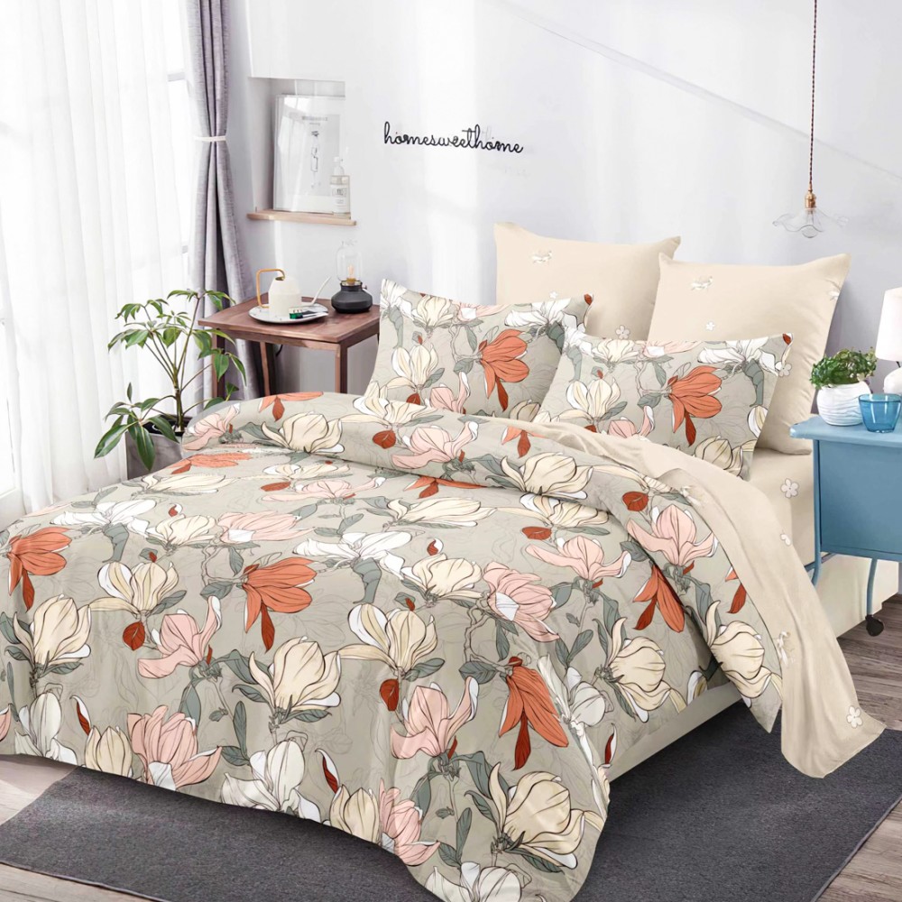 Lenjerie Pat Dublu, FINET, 6 piese, Gri, Bej, Flori, Super Design Pucioasa, cod produs: SDP-FNC-777