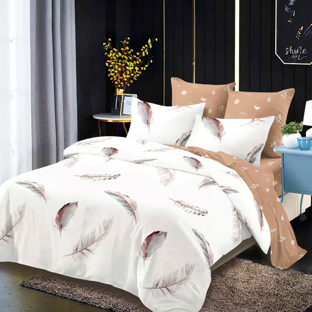 Lenjerie Pat Dublu, FINET, 6 piese, Crem, Bej, Pene, Super Design Pucioasa, cod produs: SDP-FNC-796