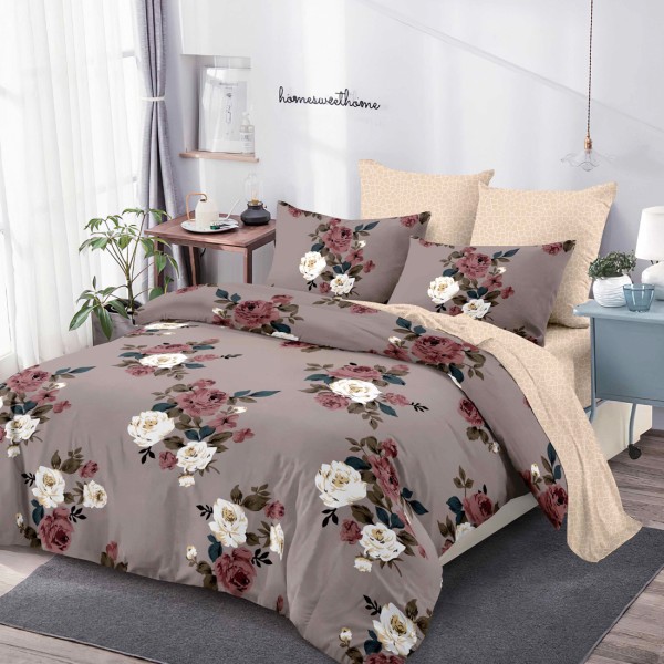 Lenjerie Pat Dublu, FINET, 6 piese, Movuriu, Bej, Flori, Super Design Pucioasa, cod produs: SDP-FNC-799