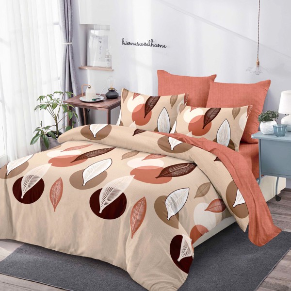 Lenjerie Pat Dublu, FINET, 6 piese, Bej, Somon, Frunze, Super Design Pucioasa, cod produs: SDP-FNC-804
