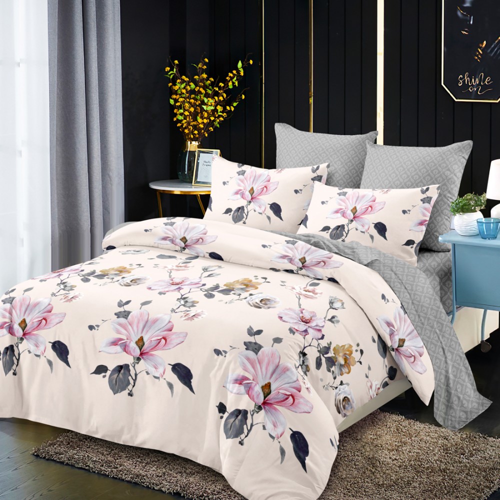 Lenjerie Pat Dublu, FINET, 6 piese, Crem, Gri, Flori, Super Design Pucioasa, cod produs: SDP-FNC-822