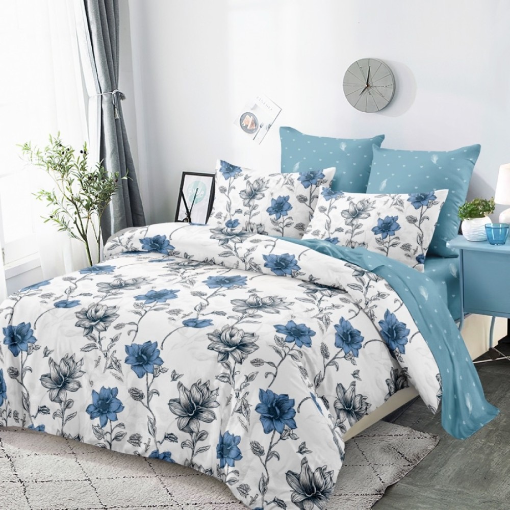 Lenjerie Pat Dublu, FINET, 6 piese, Gri, Bleu, Flori, Super Design Pucioasa, cod produs: SDP-FNC-825