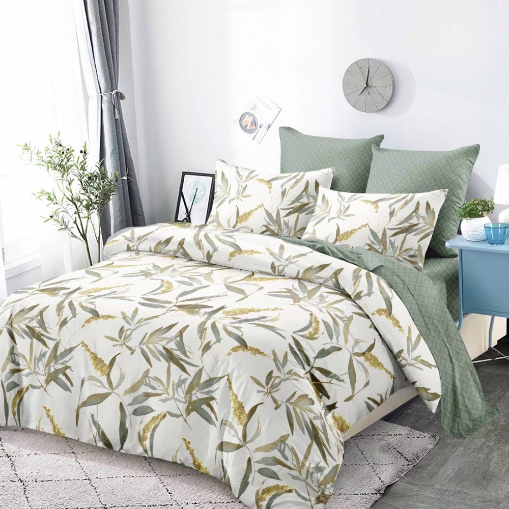 Lenjerie Pat Dublu, FINET, 6 piese, Gri, Verzui, Frunze, Super Design Pucioasa, cod produs: SDP-FNC-827