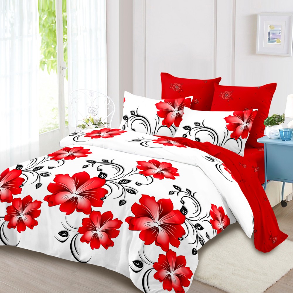 Lenjerie Pat Dublu, FINET, 6 piese, Alb, Roșu, Flori, Super Design Pucioasa, cod produs: SDP-FNC-850
