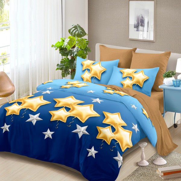 Lenjerie Pat Dublu, FINET, 6 piese, Albastru, Maro, Steluțe, Super Design Pucioasa, cod produs: SDP-FNC-856