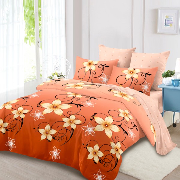 Lenjerie Pat Dublu, FINET, 6 piese, Portocaliu, Somon, Flori, Super Design Pucioasa, cod produs: SDP-FNC-857