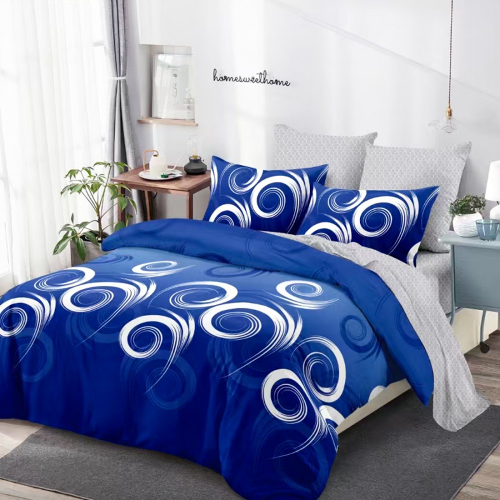 Lenjerie Pat Dublu, FINET, 6 piese, Albastru, Gri, Model Clasic, Super Design Pucioasa, cod produs: SDP-FNC-858