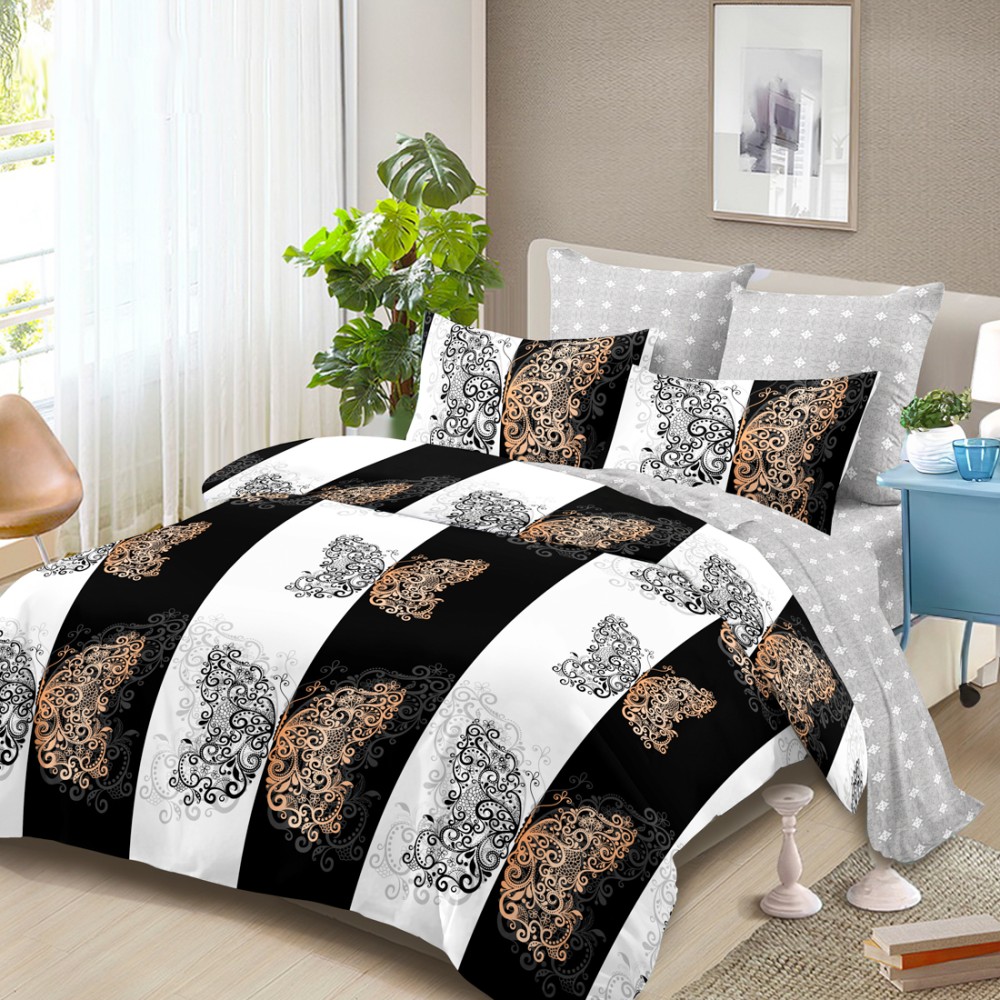 Lenjerie Pat Dublu, FINET, 6 piese, Alb, Negru, Dungi, Fluturi, Super Design Pucioasa, cod produs: SDP-FNC-862