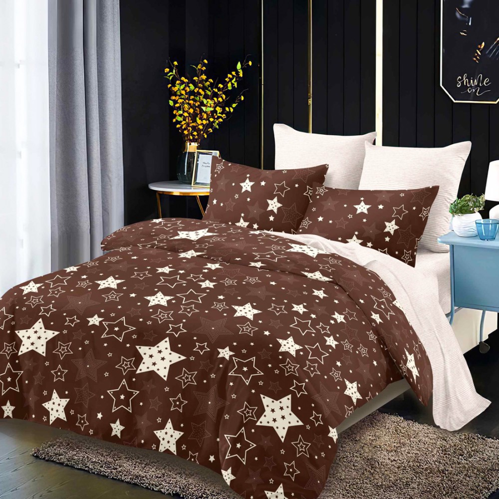 Lenjerie Pat Dublu, FINET, 6 piese, Bej, Maro, Steluțe, Super Design Pucioasa, cod produs: SDP-FNC-870