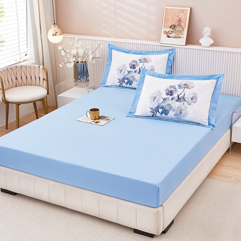 Cearsaf cu elastic, FINET, 160x200cm, UNI + 2 fete de perne 50x70cm, cu Model Floral, Bleu, Super Design Pucioasa, cod produs: SDP-HSD-03