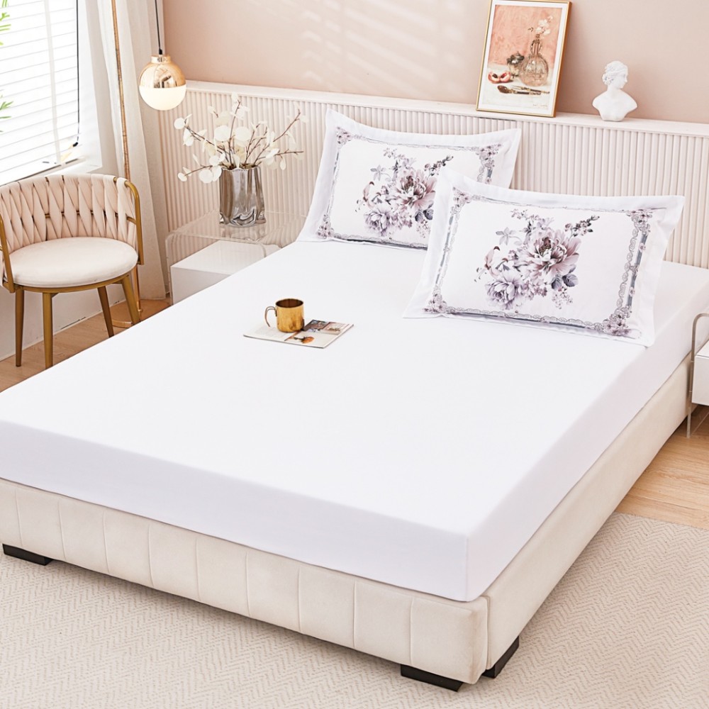 Cearsaf cu elastic, FINET, 160x200cm, UNI + 2 fete de perne 50x70cm, cu Model Floral, Alb, Super Design Pucioasa, cod produs: SDP-HSD-11