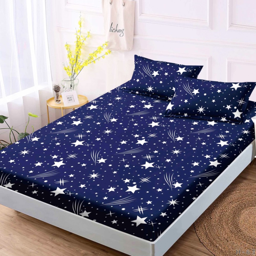 Cearsaf cu elastic, Bumbac FINET, 160x200cm, 2 fete de perne 50x70cm, Bleumarin, Alb, Ploaie de Stele, Super Design Pucioasa, cod produs: SDP-HH-63