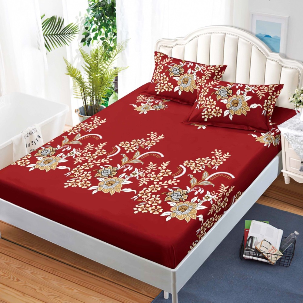 Cearsaf cu elastic, Bumbac FINET, 160x200cm, 2 fete de perne 50x70cm, Visiniu, Model Elegant, Super Design Pucioasa, cod produs: SDP-HH-124