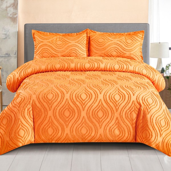 Lenjerie de Pat Premium, Bumbac Finet, Smocuri Brodate, 4 Piese, cu ELASTIC, Nesifonabilă și Durabilă, Eliana, Portocaliu, Super Design Pucioasa, cod produs: SDP-UB-01