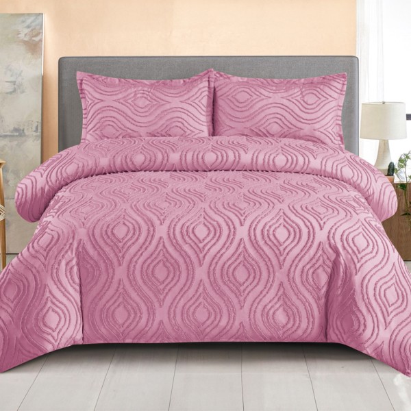 Lenjerie de Pat Premium, Bumbac Finet, Smocuri Brodate, 4 Piese, cu ELASTIC, Nesifonabilă și Durabilă, Eliana, Roz, Super Design Pucioasa, cod produs: SDP-UB-08
