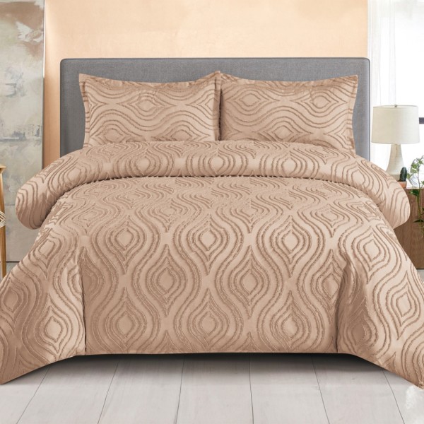 Lenjerie de Pat Premium, Bumbac Finet, Smocuri Brodate, 4 Piese, cu ELASTIC, Nesifonabilă și Durabilă, Eliana, Cappuccino, Super Design Pucioasa, cod produs: SDP-UB-09
