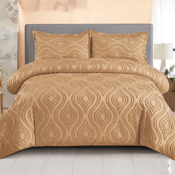 Lenjerie de Pat Premium, Bumbac Finet, Smocuri Brodate, 4 Piese, cu ELASTIC, Nesifonabilă și Durabilă, Eliana, Bej, Super Design Pucioasa, cod produs: SDP-UB-17