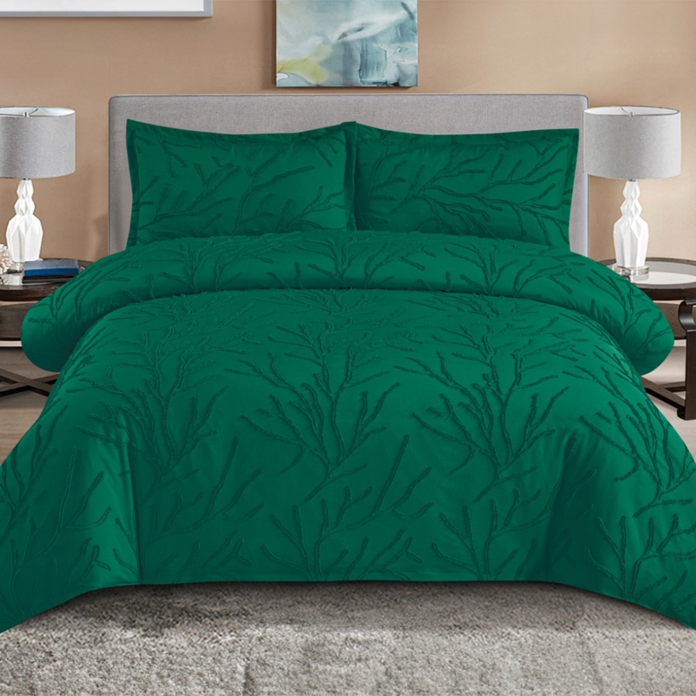 Lenjerie de Pat Premium, Bumbac Finet, Smocuri Brodate, 4 Piese, cu ELASTIC, Nesifonabilă și Durabilă, Tree, Verde Smarald, Super Design Pucioasa, cod produs: SDP-UB-20