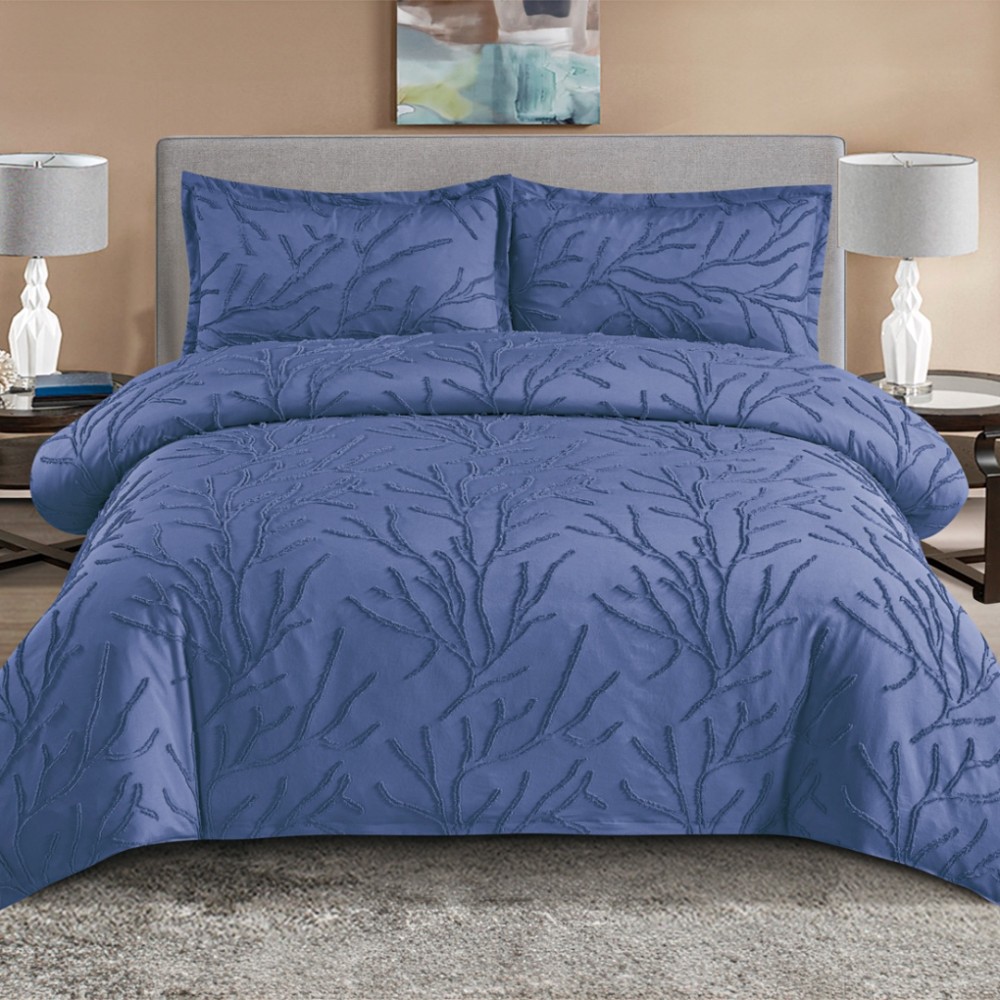 Lenjerie de Pat Premium, Bumbac Finet, Smocuri Brodate, 4 Piese, cu ELASTIC, Nesifonabilă și Durabilă, Tree, Albastru, Super Design Pucioasa, cod produs: SDP-UB-21