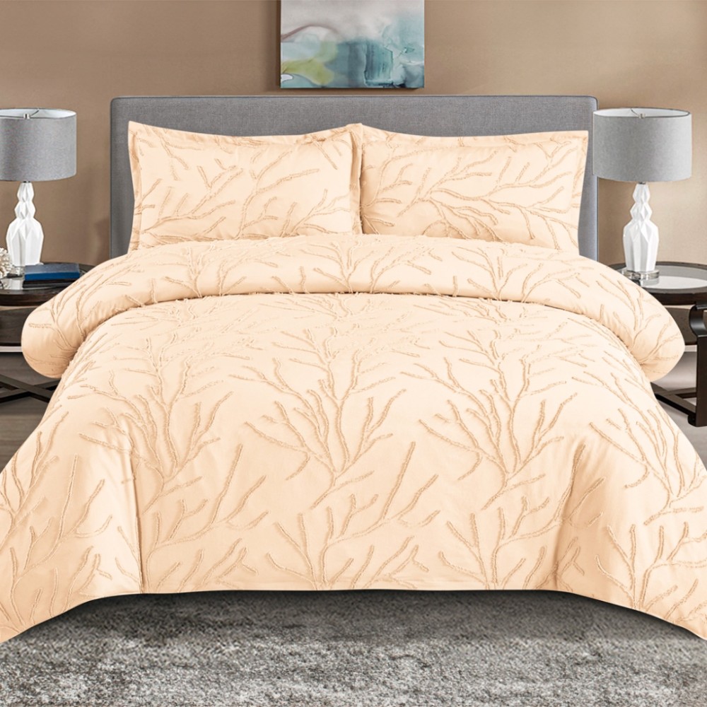 Lenjerie de Pat Premium, Bumbac Finet, Smocuri Brodate, 4 Piese, cu ELASTIC, Nesifonabilă și Durabilă, Tree, Bej Deschis, Super Design Pucioasa, cod produs: SDP-UB-32