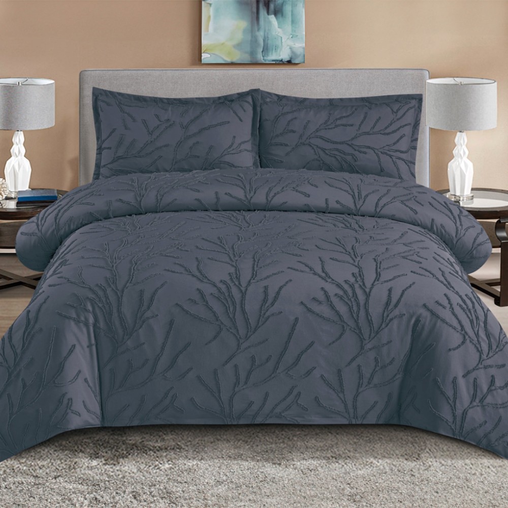 Lenjerie de Pat Premium, Bumbac Finet, Smocuri Brodate, 4 Piese, cu ELASTIC, Nesifonabilă și Durabilă, Tree, Antracit, Super Design Pucioasa, cod produs: SDP-UB-33
