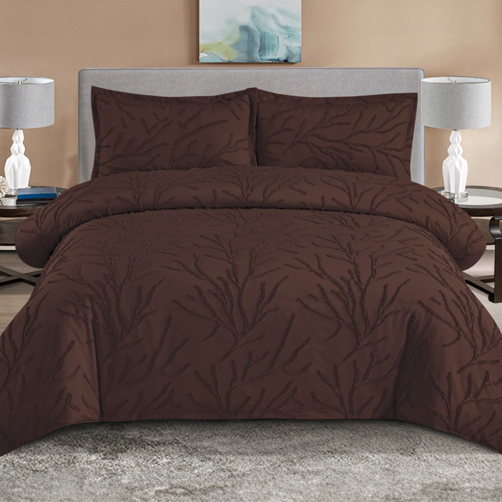 Lenjerie de Pat Premium, Bumbac Finet, Smocuri Brodate, 4 Piese, cu ELASTIC, Nesifonabilă și Durabilă, Tree, Maro, Super Design Pucioasa, cod produs: SDP-UB-36