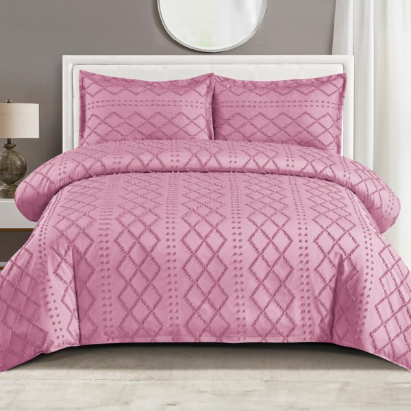 Lenjerie de Pat Premium, Bumbac Finet, Smocuri Brodate, 4 Piese, cu ELASTIC, Nesifonabilă și Durabilă, Elegance, Roz, Super Design Pucioasa, cod produs: SDP-UB-44
