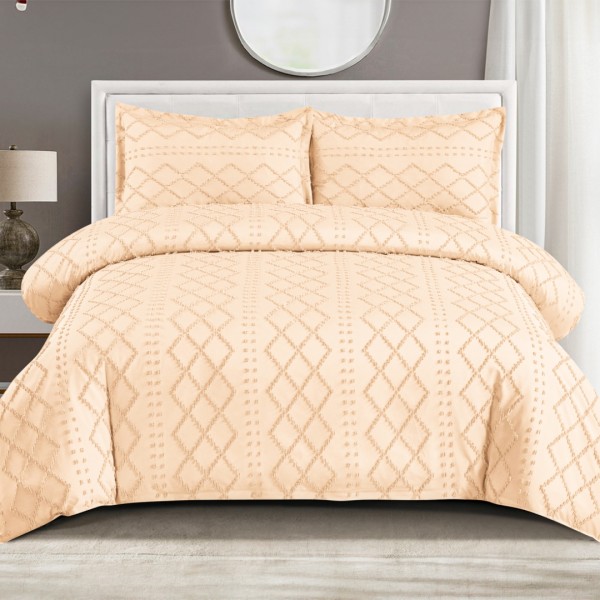 Transformă dormitorul într-un spațiu de lux cu noua lenjerie de pat dublu din finet de bumbac 100%, cu smocuri brodate în relief – o țesătură revoluționară care combină rafinamentul cu funcționalitatea, pentru un confort desăvârșit în fiecare noapte.